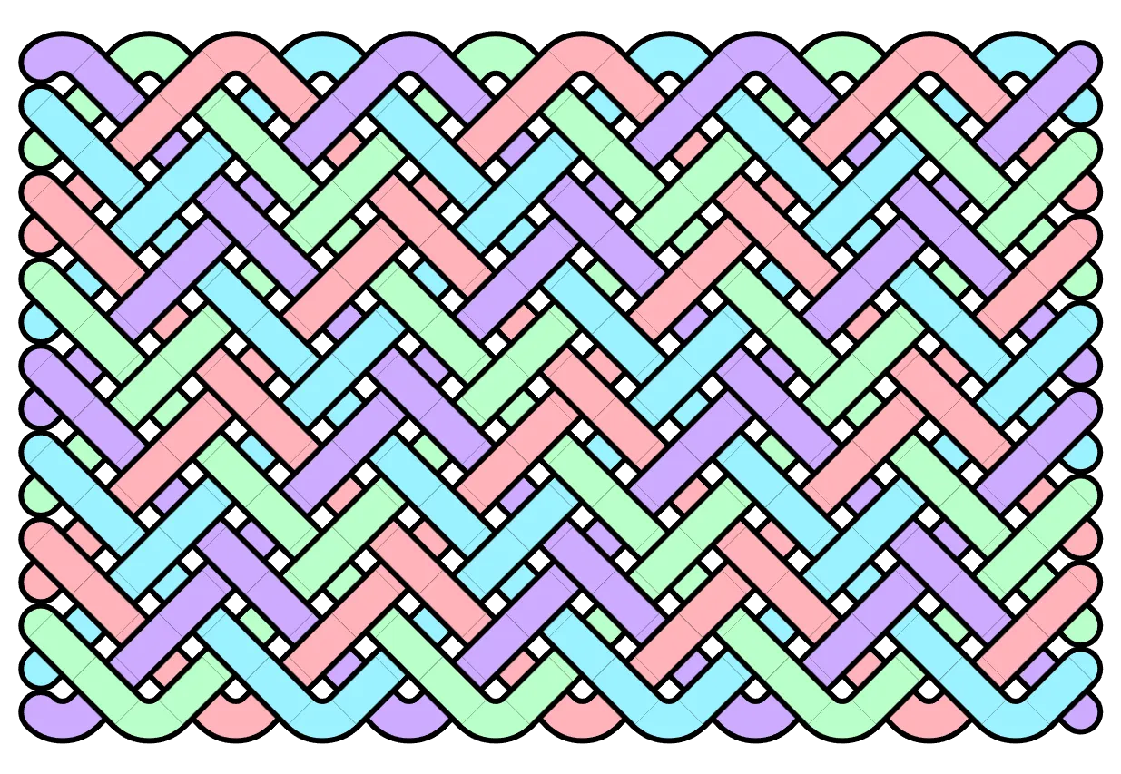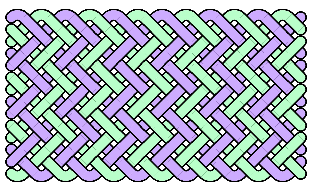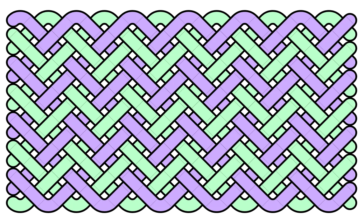 To move from a Turks Head to a Fan knot, change the Coding Pattern from O1U1 to 02U2 or O3U3 and then click-drag the canvas to explore bight-part combinations. Use Column Coding to discover Herringbone patterns and Row Coding to discover Gaucho Fan patterns.
