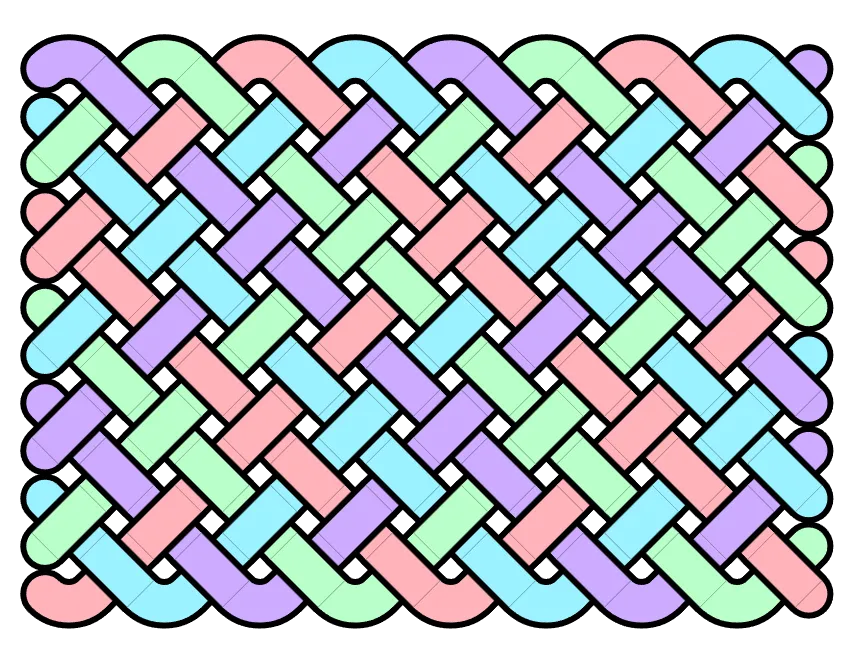 Section titled “Visual Exploration”You may have noticed that Bight Forge does not have an input for number of strands. Instead, Bight Forge fills the grid with as many closed-loop strands as are needed given the Coding Mode, Coding Pattern, Bight Nests, and Shift Bottom Bights settings.