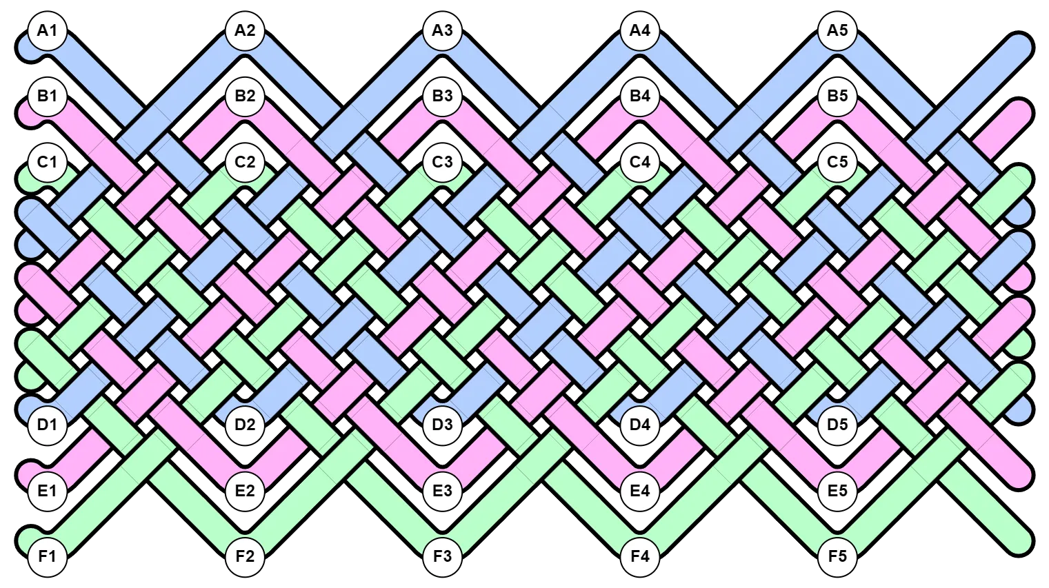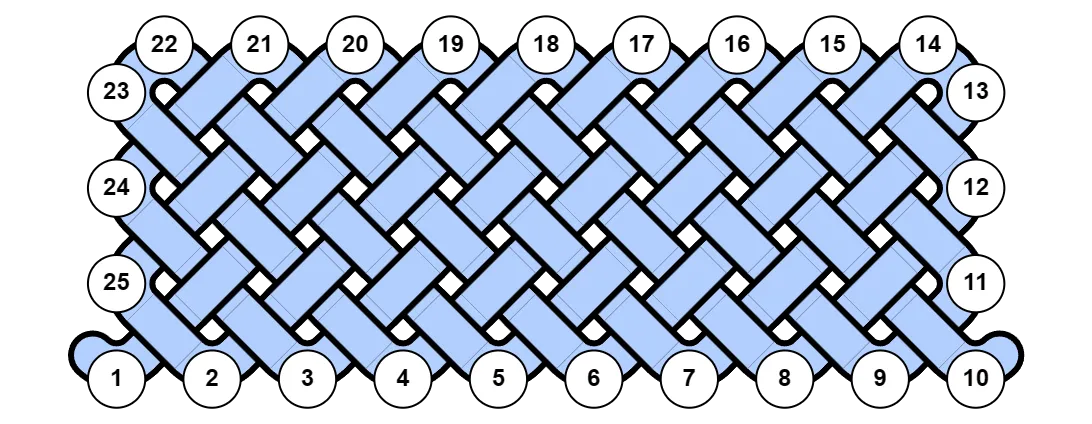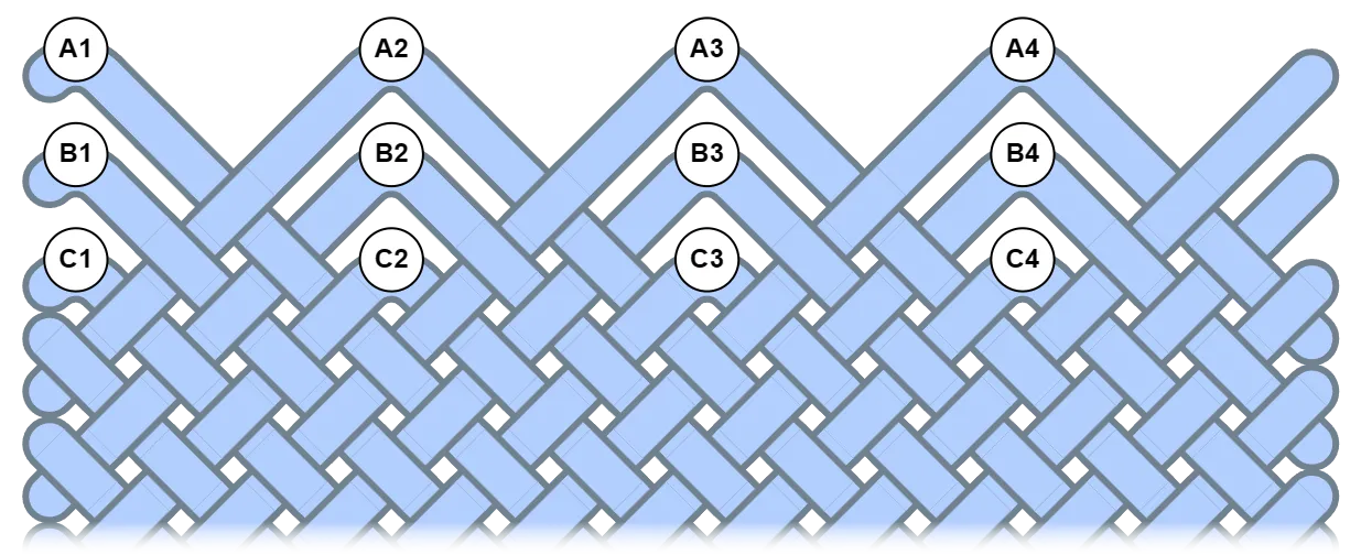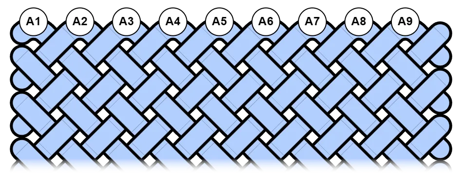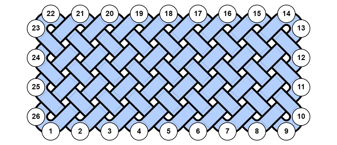 Section titled “Mat Knots”For mat knots, bights is the number of bights in the top row plus 1. This is because there is an implied half-bight in each corner that only becomes visible when the knot is open-ended.