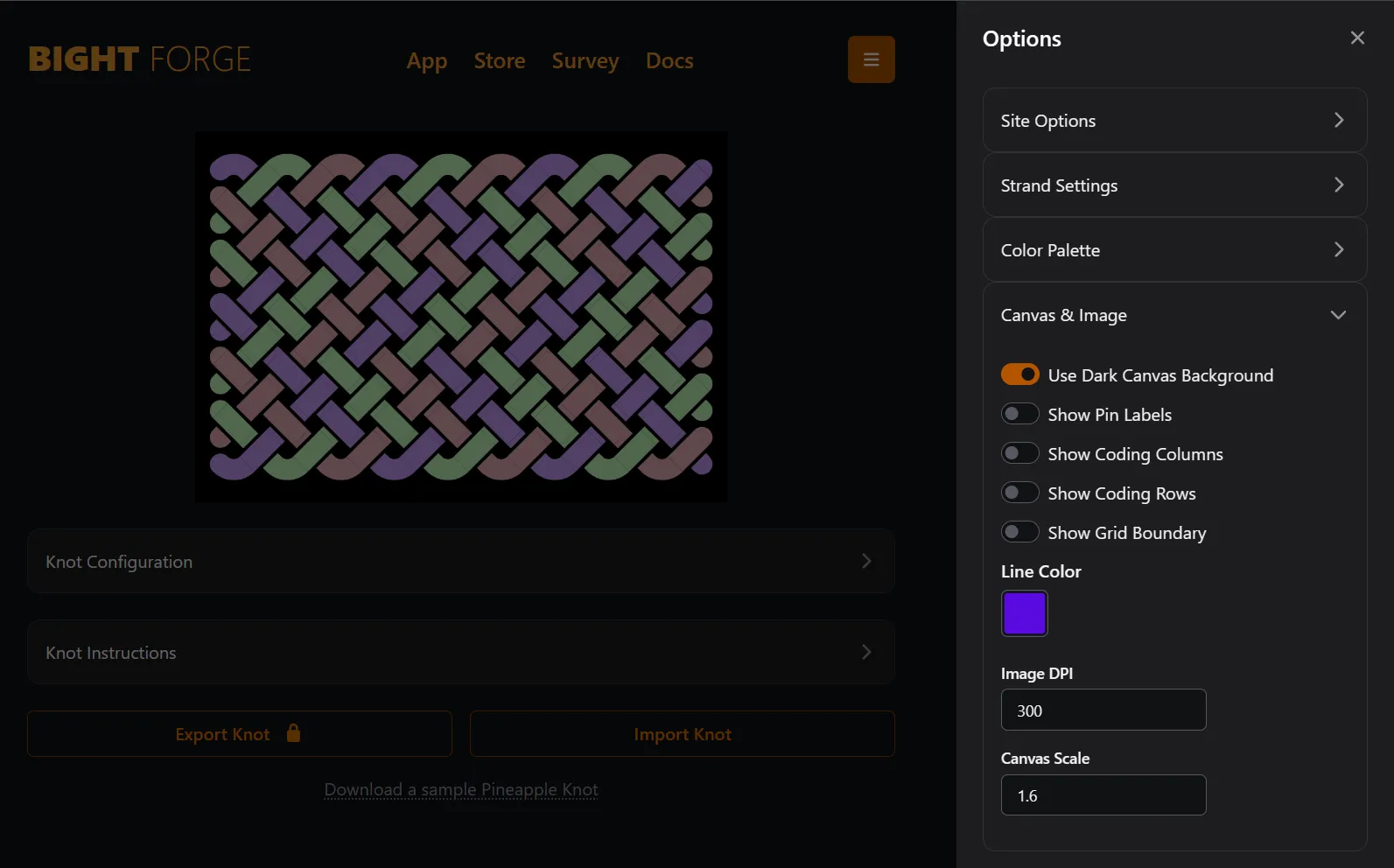 Section titled “Canvas Scale”Canvas Scale lets you adjust the size of the on-screen canvas for better viewing. It does not impact knot size or strand length estimates.