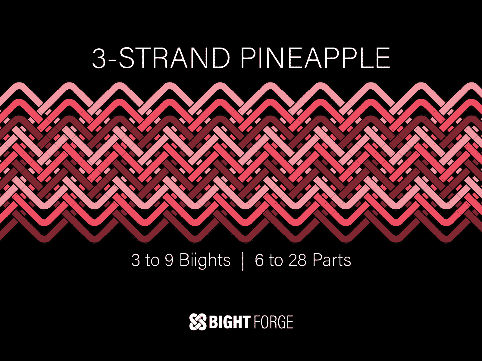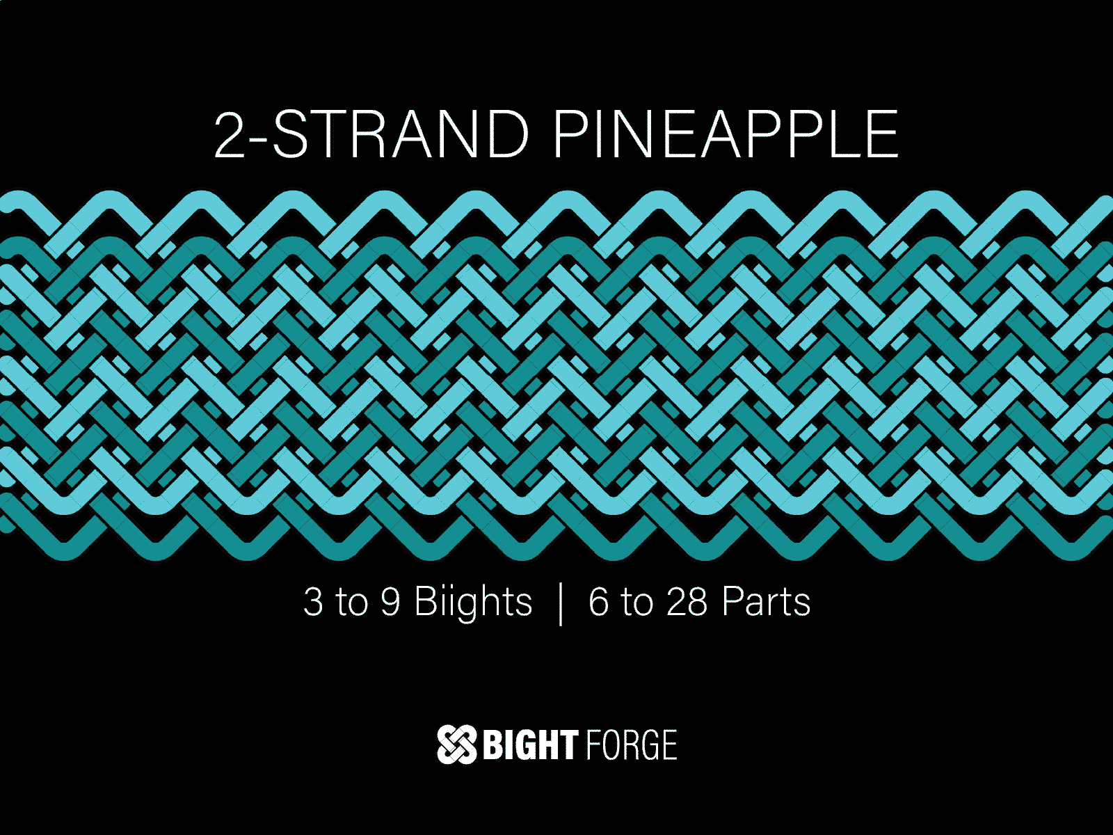 Classic 2-strand Pineapple knots. 3 to 9 bights and 6 to 28 parts.